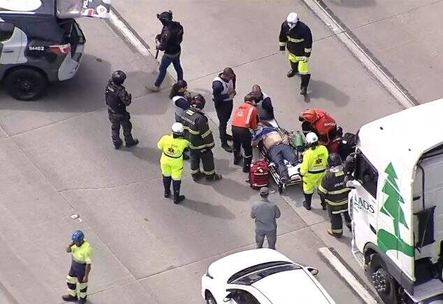 Ao deixar a carreta, o homem desmaiou e recebeu atendimento médico. Segundo a concessionária que administra a rodovia, o caminhoneiro acionou o centro de controle afirmando ter sofrido um assalto seguido de sequestro por volta das 4h desta quarta, sendo obrigado a atravessar a carreta na pista.