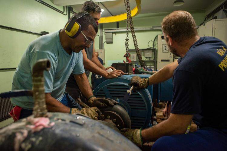 Foto: Luciano Lanes/PMPATécnicos do Dmae (Departamento Municipal de Água e Esgotos) finalizaram, por volta das 6h desta quarta-feira (05), a instalação de dois novos grupos motor-bomba na Estação de Bombeamento de Água Tratada São José II, em Porto Alegre. Com isso, os reservatórios passaram a encher e o fornecimento de água começou a ser normalizado nos bairros da Zona Leste da cidade.