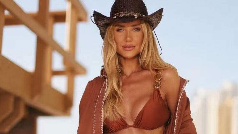 Foto: Reprodução/InstagramAna Paula Siebert, de 37 anos, compartilhou em suas redes sociais, nesta segunda-feira (28), alguns cliques de um dia de praia. Com o bronzeado em dia e com chapéu de cowgirl, a influenciadora digital ostentou suas curvas em um biquíni marrom cheio de detalhes.
