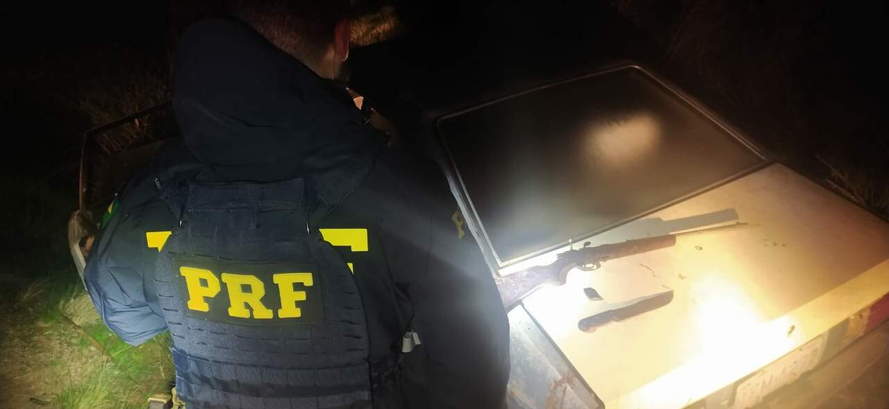 Foto: PRF/DivulgaçãoA PRF (Polícia Rodoviária Federal) prendeu, na madrugada desta quarta-feira (22), um criminoso armado que invadiu uma propriedade rural às margens da BR-153, em Hulha Negra, junto com um comparsa.