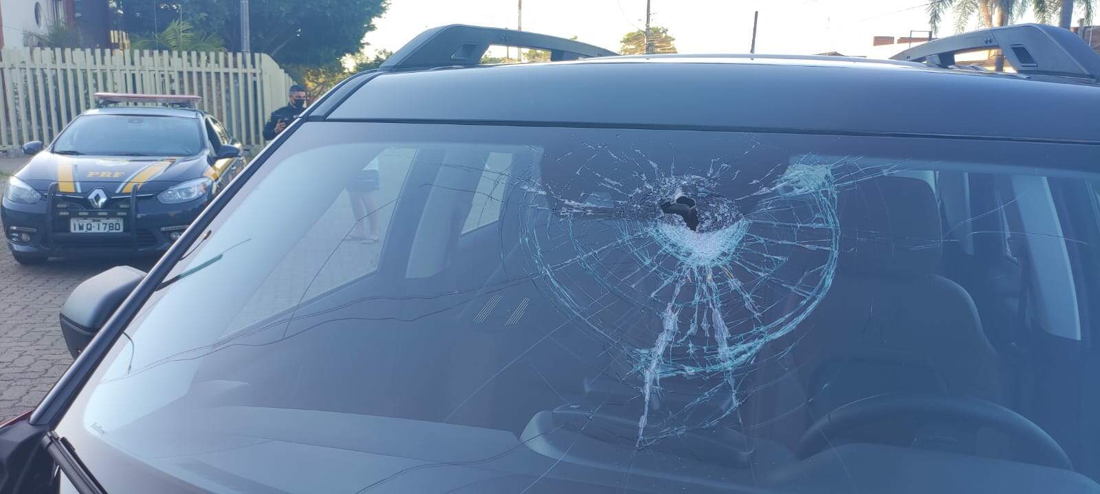 O objeto destruiu o para-brisa, mas ninguém ficou ferido.