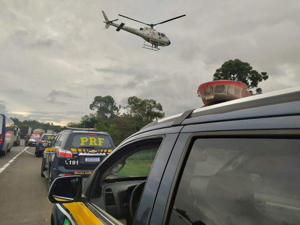 Na fuga, os criminosos jogaram "miguelitos" para furar os pneus das viaturas policiais. Perseguição contou até com helicóptero.