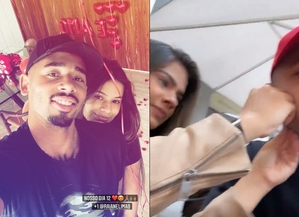 “Nosso dia 12”, escreveu o jogador do Manchester City na legenda da imagem, usando ainda “+1”, celebrando o aniversário de namoro e o bebê. Gabriel também mostrou Raiane espremendo um cravo ou espinha em seu rosto.