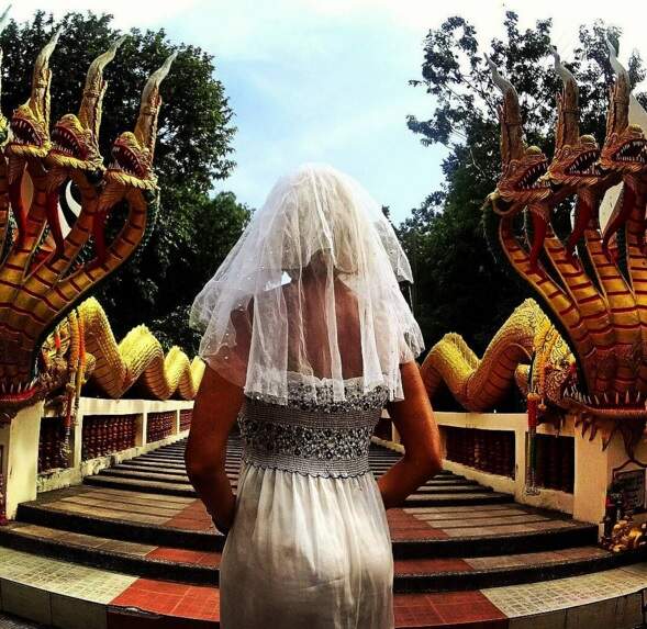 A tcheca Pavlina Melicharova, 49 anos, viveu um relacionamento abusivo por muitos anos até decidir largar tudo e iniciar uma jornada de autoconhecimento. Desde outubro de 2015, a mulher já passou por Turquia, Índia, Tailândia, Nepal, Myanmar, Malásia, Singapura e Emirados Árabes – sempre em seu antigo vestido de noiva. O motivo de usar um dos símbolos da relação infeliz em sua jornada é o seguinte: representar o recomeço e inspirar outras pessoas que vivem uma situação semelhante a se libertarem.