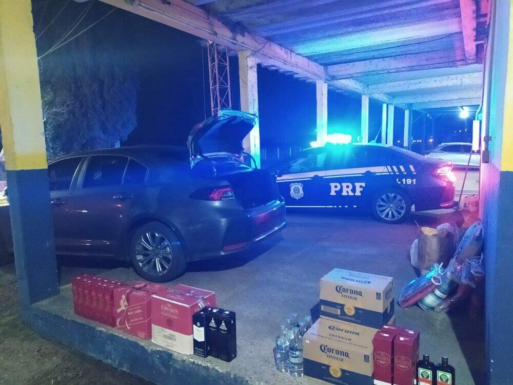 Em um Corolla, que transitava em direção a Santa Catarina, viajava um homem de 63 anos, e sua mulher de 57, com quase 100 litros de bebidas, a maioria delas uísque, importadas ilegalmente.