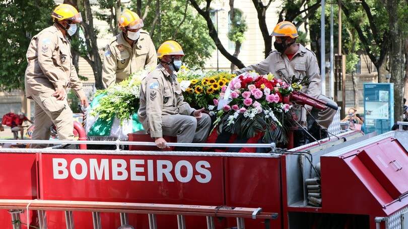 Depois de ser velado no Theatro Municipal, no Rio de Janeiro, o corpo de Elza Soares foi levado na tarde desta sexta-feira (21) em cortejo em um carro do Corpo de Bombeiros.