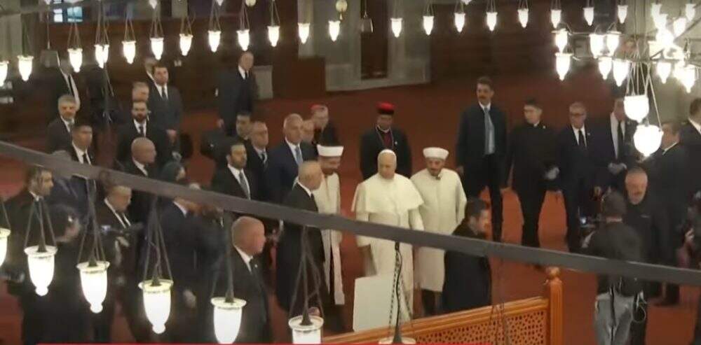 Na manhã deste sábado, o pontífice visitou a Mesquita Azul, um dos monumentos mais emblemáticos de Istambul. Ele retirou os sapatos para entrar no local — sua primeira visita a um espaço de culto muçulmano desde sua eleição, em maio — seguindo o exemplo de Bento XVI, em 2006, e de Francisco, em 2014.