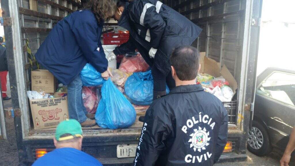 A Polícia Civil deflagrou nesta quinta-feira (17) uma ação conjunta em Canoas, com diversas entidades, coibindo crimes contra as relações de consumo, contra a saúde pública, contra o meio ambiente e contra o patrimônio das concessionárias. Aproximadamente 1,2 tonelada de produtos impróprios apreendidos. Duas pessoas presas em flagrante por crime contra as relações de consumo.