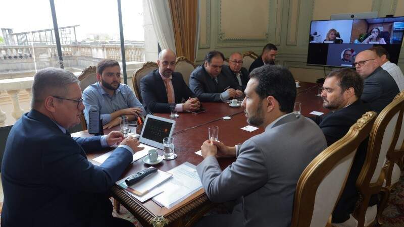Foto: Itamar Aguiar / Palácio PiratiniO governador Ranolfo Vieira Júnior recebeu, na tarde desta quinta-feira (8), no Palácio Piratini, representantes da empresa gaúcha de tecnologia aeronáutica Aeromot e da italiana Leonardo Corporate, que possui faturamento anual de R$ 15 bilhões e é considerada uma das maiores do mundo no setor. O grupo apresentou o projeto de cooperação comercial e industrial conjunta que está sendo finalizado entre as duas companhias.