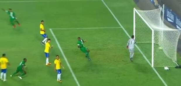 Em cobrança de escanteio feita por Orellana da direita, Felipe Gutiérrez se aproveitou da falha de posicionamento da zaga, subiu mais do que todos e cabeceou para fazer 1 a 0 para os chilenos aos 10 minutos da etapa inicial.
