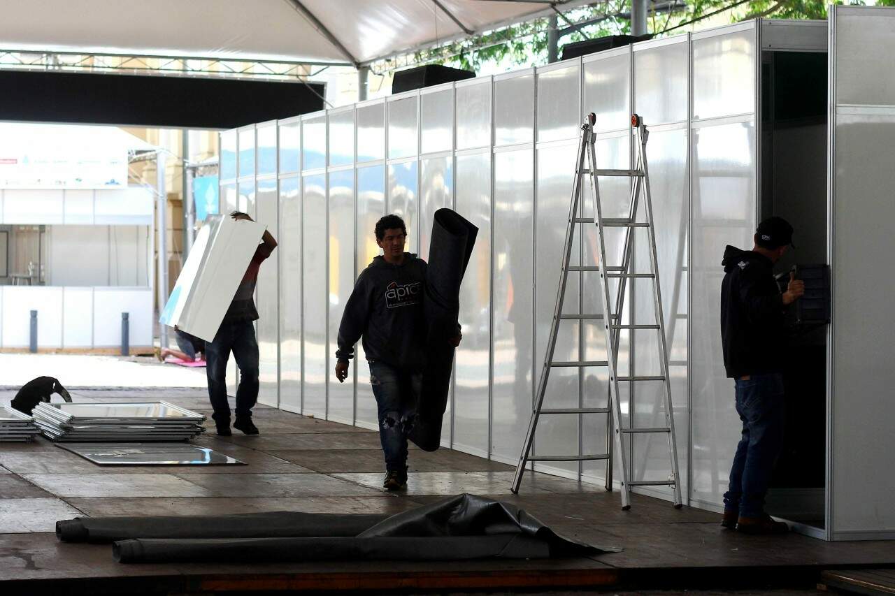 Porto Alegre 2016 – Finalização da montagem dos estandes para a Feira do Livro 2016. – FOTO – Jackson Ciceri