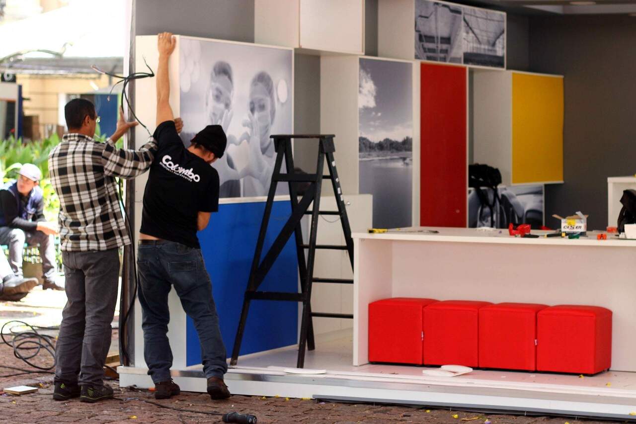Porto Alegre 2016 – Finalização da montagem dos estandes para a Feira do Livro 2016. – FOTO – Jackson Ciceri