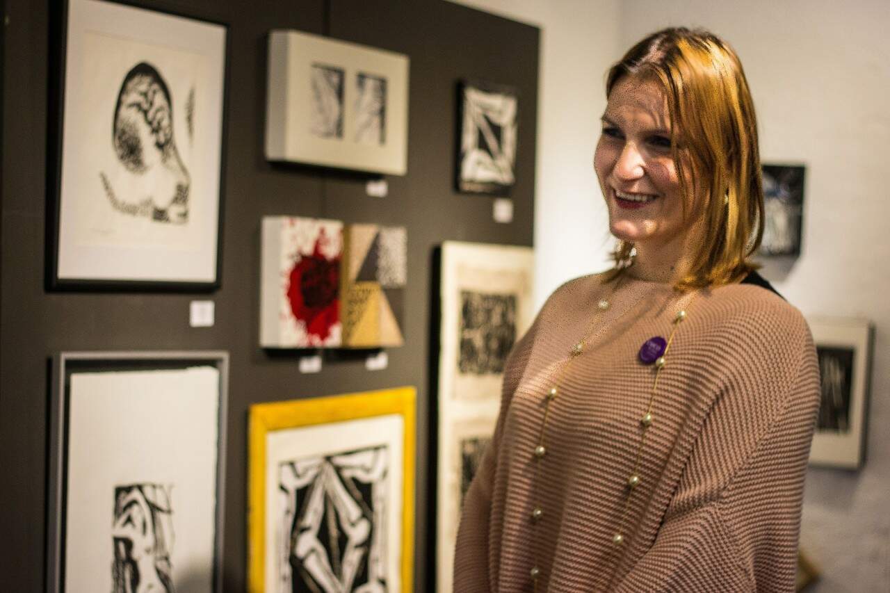 Cassio Raabe diante da gravura de sua autoria, e que faz parte da mostra. Foto: Jackson Ciceri/ O Sul