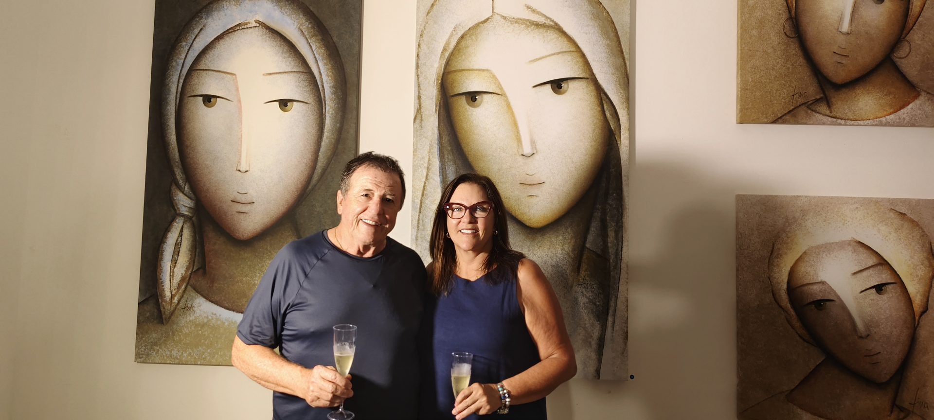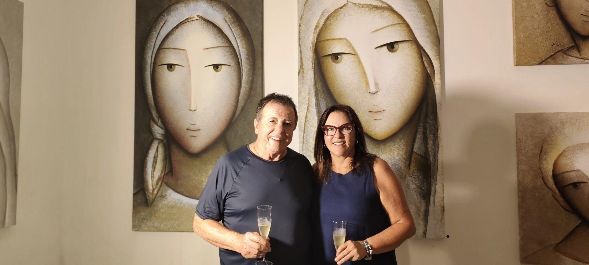 Na ocasião, estava presente um dos primeiros fãs e clientes de Tina, Pedro Carneiro da Fontoura, que possui uma obra da artista em sua casa em Atlântida. Ele descreveu a experiência de contemplar o quadro como um momento de paz: “Depois de um dia estressante, adoro pegar uma bela taça de vinho, me sentar à mesa e ficar contemplando esta obra. Ela me dá serenidade, é como se eu estivesse meditando. A escolha das cores e a temática são tão perfeitas que nunca me canso de olhar. Cada convidado que frequenta minha casa também reconhece a qualidade da obra.”