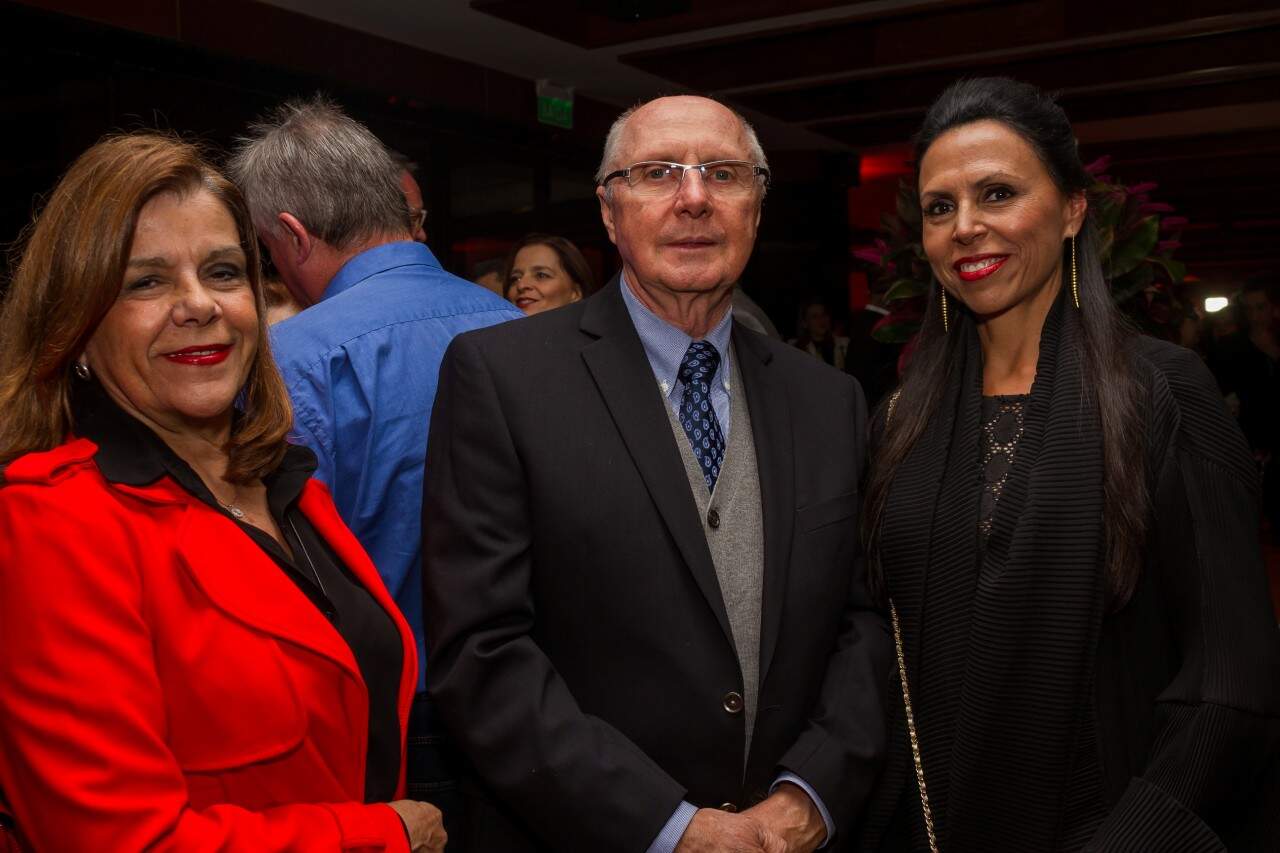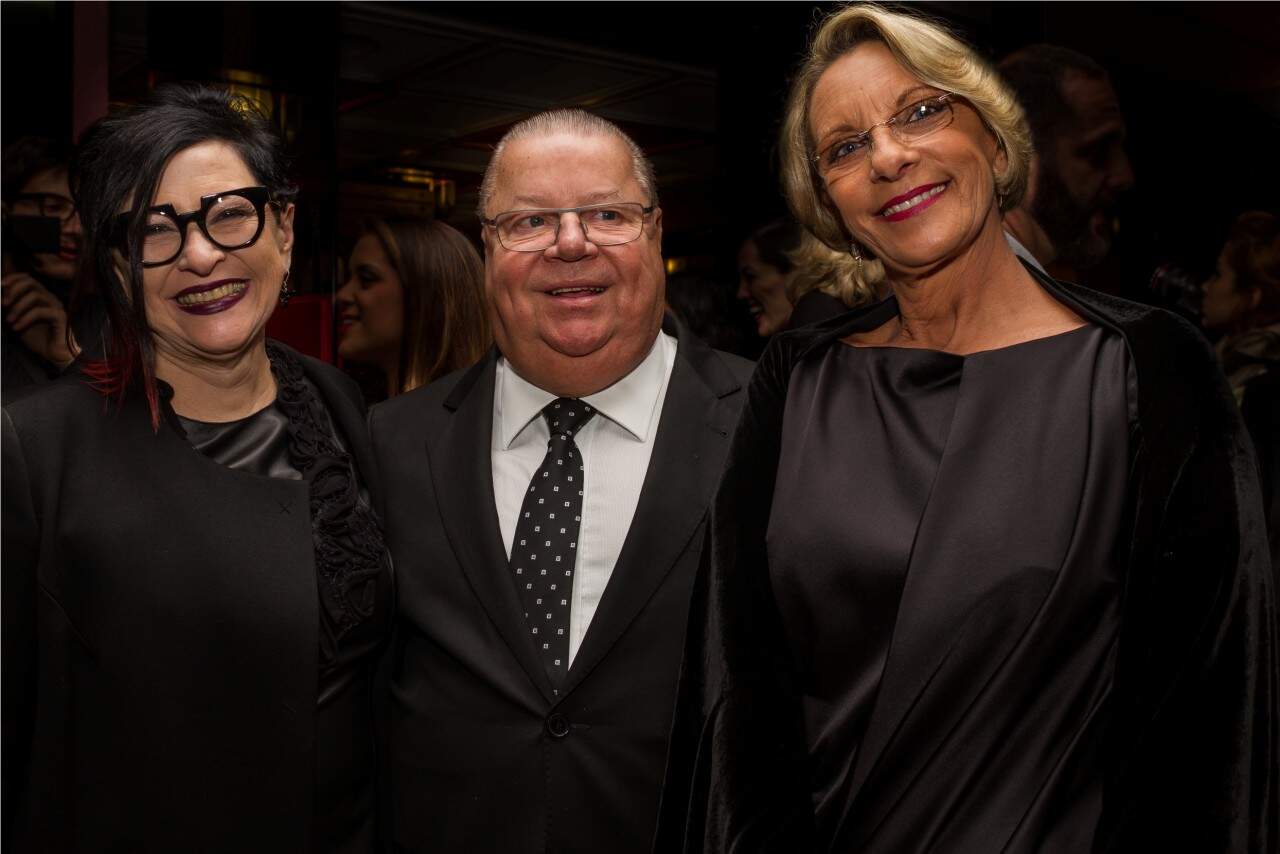Eva Sopher entre Steffen Dauelsberg e Geraldo Lopes nas comemorações dos 40 anos da Opus Promoções. (Foto: Pedro Antonio Heinrich/especial)