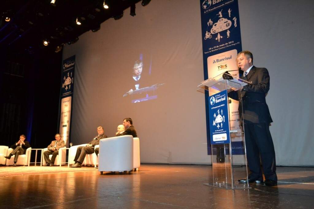 O presidente do Banrisul, Luiz Gonzaga Mota, fez a abertura da 9ª edição do Fórum Internacional de TI.