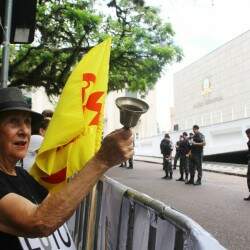 A Assembleia foi isolada para a votação pela Brigada Militar, que montou um forte esquema de segurança. Houve manifestações de servidores e sindicalistas. Do lado de fora da Casa, o clima ficou tenso entre brigadianos e servidores da Polícia Civil, que exigiam o direito de participar da sessão. A tropa de choque da Brigada Militar foi acionada e uma servidora foi prensada contra as grades. Servidores e dirigentes de entidades sindicais, que conseguiram entrar no Parlamento, protestaram nas galerias.