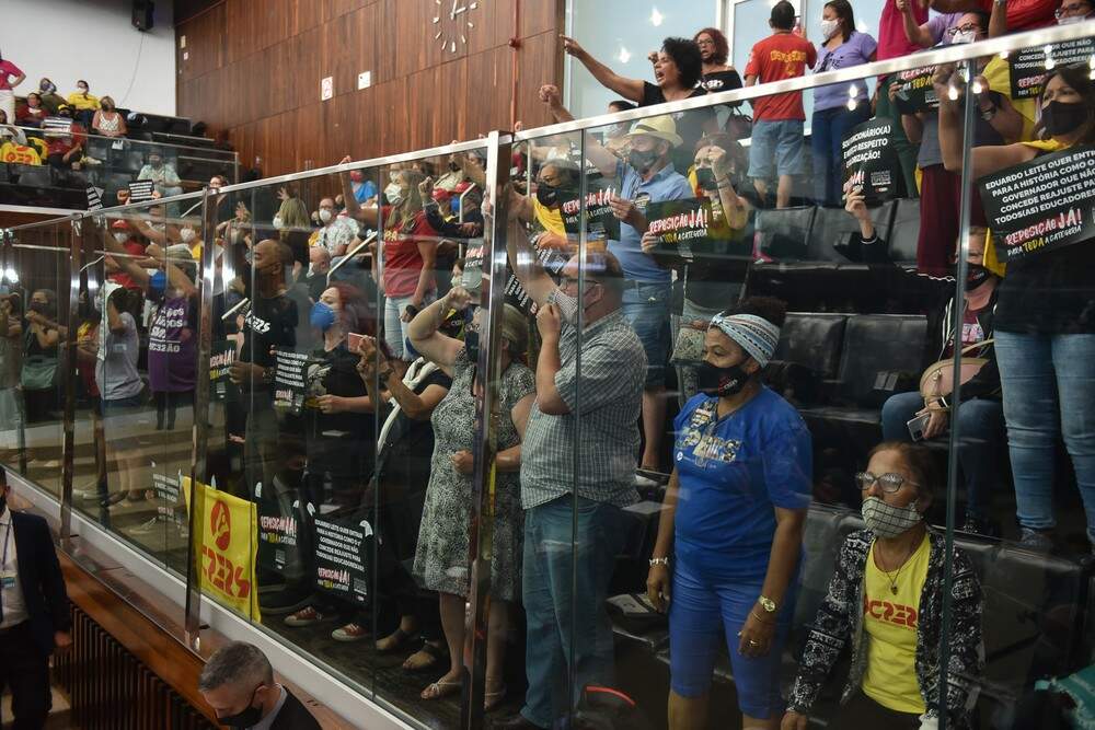 Professores fizeram protesto nas galerias da Assembleia gaúcha.