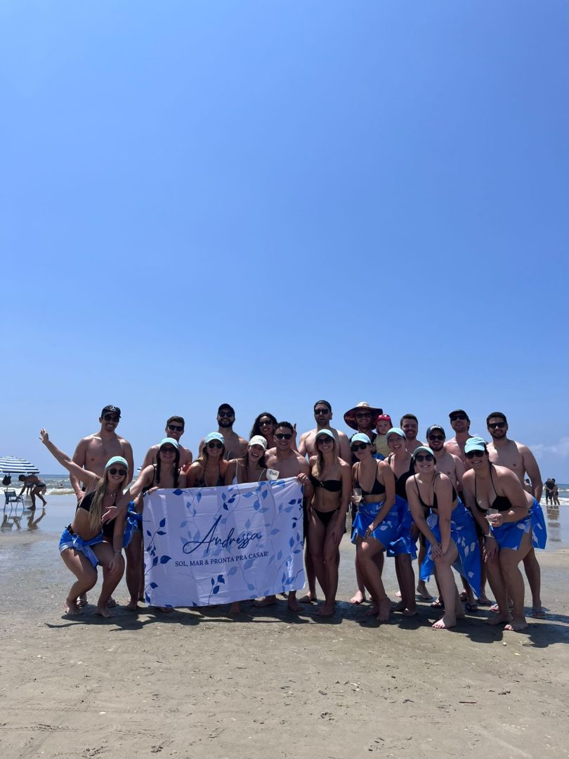 A simpatia com ovo no telhado do Airbnb para afastar a previsão de tempestades foi outro detalhe que arrancou boas risadas. Para alguns convidados, a viagem até Atlântida durou apenas duas horas, um trajeto rápido que reforçou a praticidade da escolha do litoral. Já outros encararam mais de seis horas de estrada para não perder o fim de semana especial. O resultado foi uma despedida épica, marcada por alegria e pela certeza de que o casamento será celebrado com a mesma intensidade.