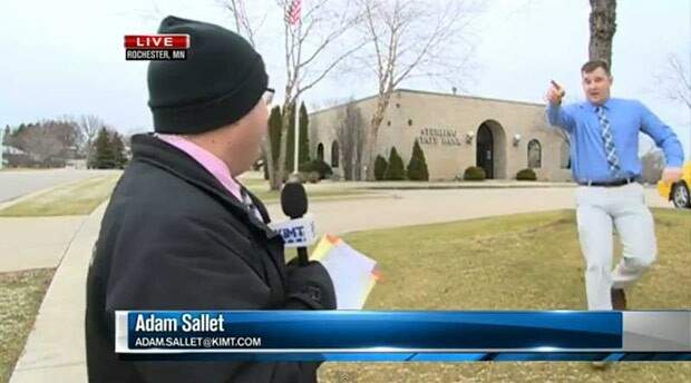Repórter flagra ladrão de banco durante uma reportagem ao vivo
