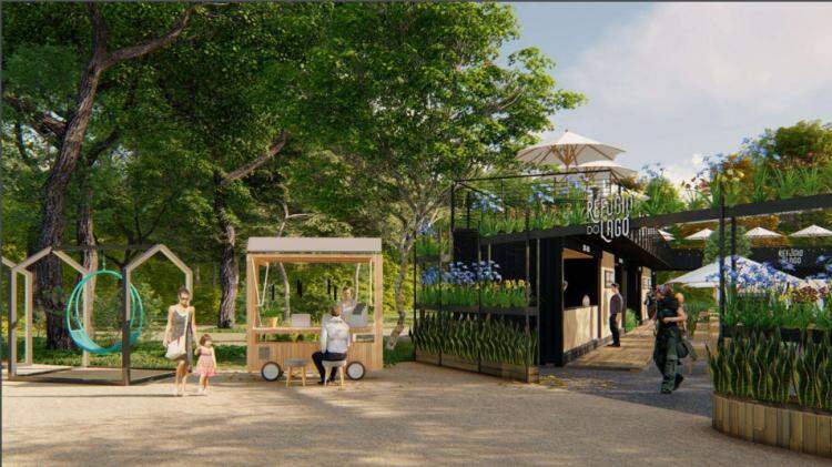 O espaço compreende uma área de 750 metros quadrados, localizada entre o espelho d’água e o laguinho do parque, e contará com mesas ao ar livre, cadeiras e guarda-sóis, palco para apresentações, espaço pet e estacionamento para bicicletas. Serão quatro módulos de contêineres destinados à gastronomia e um módulo para o sanitário.