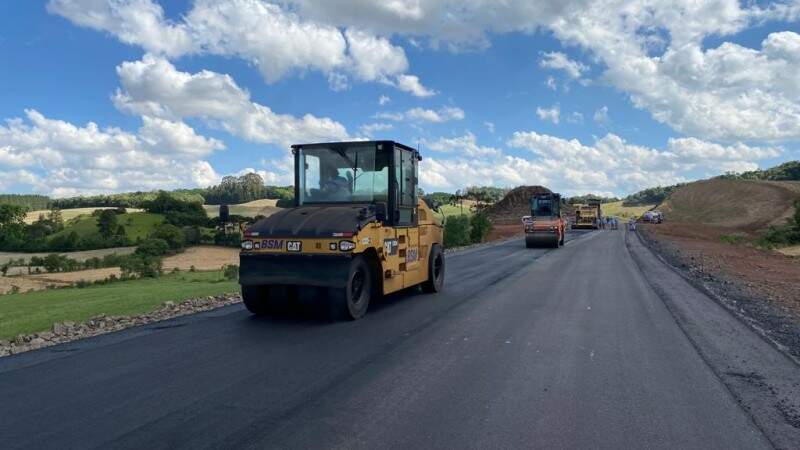 Foto: Divulgação/DaerOs moradores de Guabiju e Nova Araçá, na Região Nordeste do Rio Grande do Sul, acompanham o avanço do asfalto pela rodovia que liga os dois municípios. As obras do trecho, executadas pelo Daer (Departamento Autônomo de Estradas de Rodagem), já alcançam 52% do cronograma.
