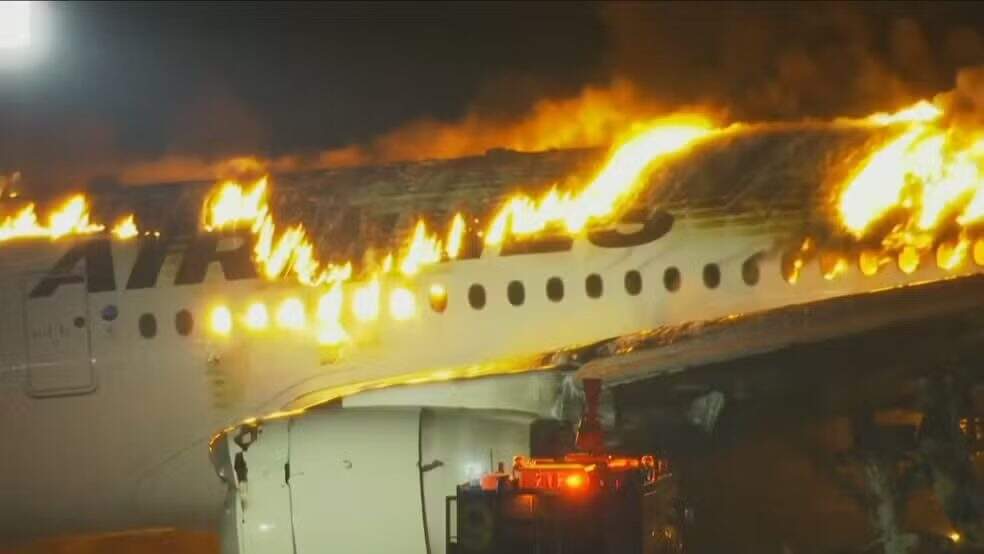 No avião da Guarda Costeira, havia seis pessoas. A aeronave, que estava estacionada e também pegou fogo, levaria ajuda a regiões atingidas pelos terremotos de segunda-feira (1º) na Costa Oeste do país asiático.