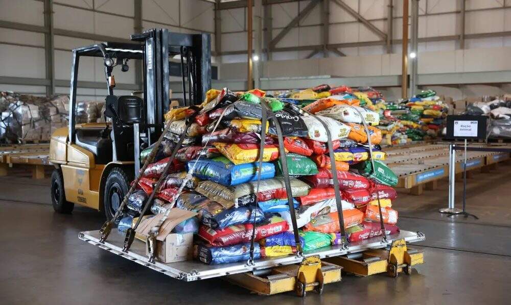 A Força Aérea Brasileira (FAB) embarcou na manhã de sábado (18) 20 toneladas de ração doadas para o Rio Grande do Sul. Além da ração, para alimentar os cães e gatos vítimas das enchentes que devastaram a maior parte do Estado, a aeronave KC-390 Millennium também levou itens essenciais como caixas de transporte, camas e bebedouros.