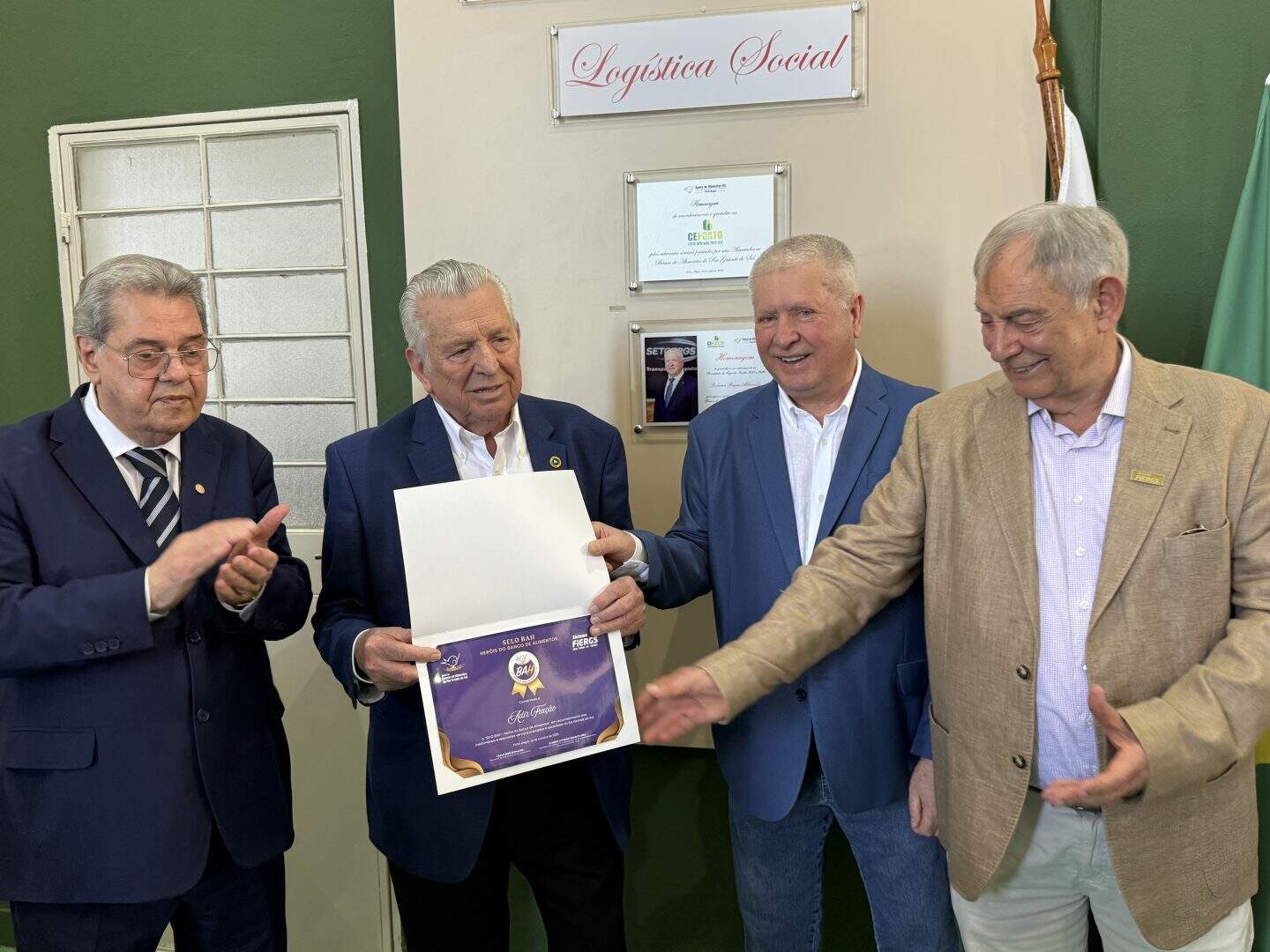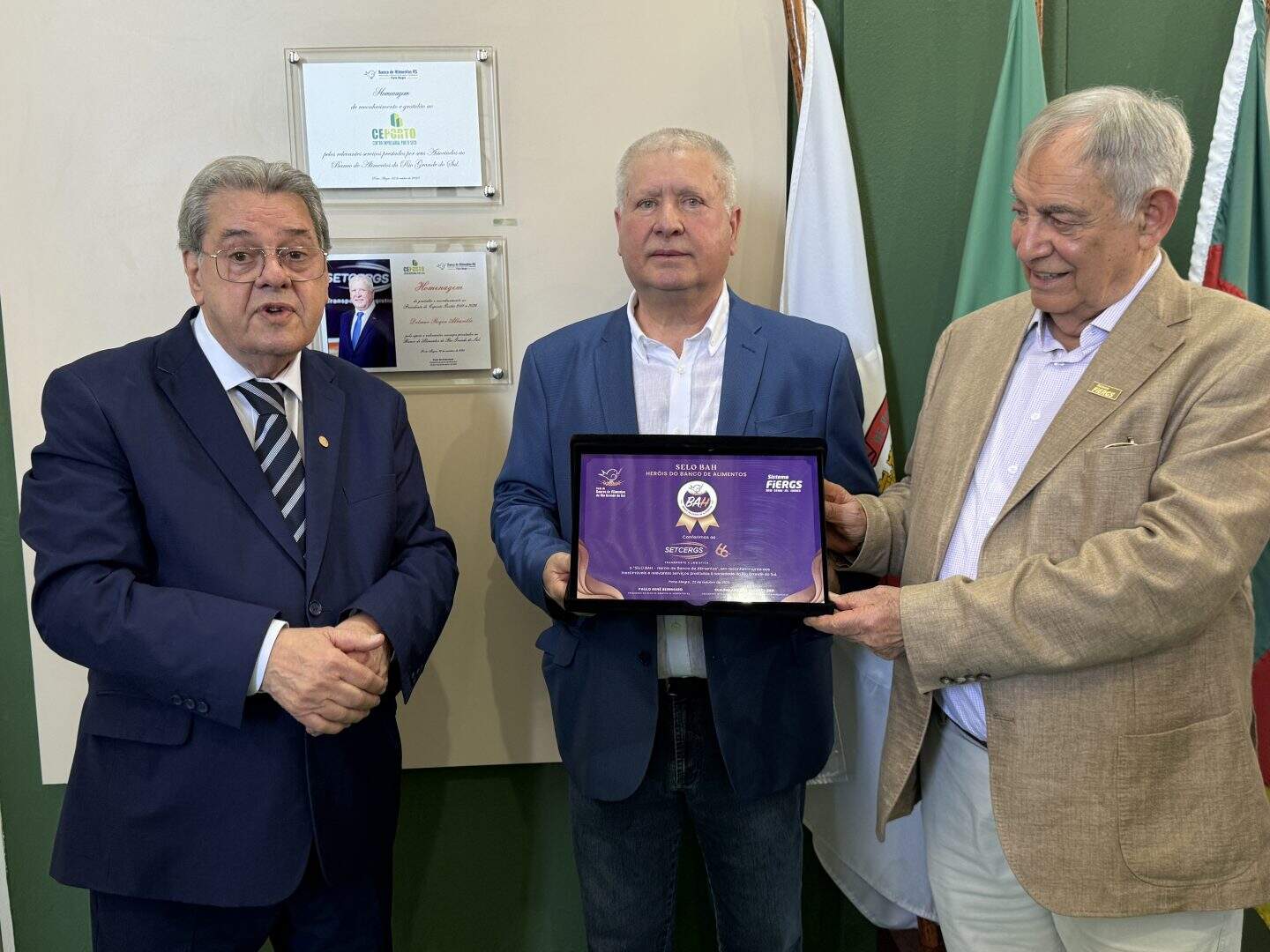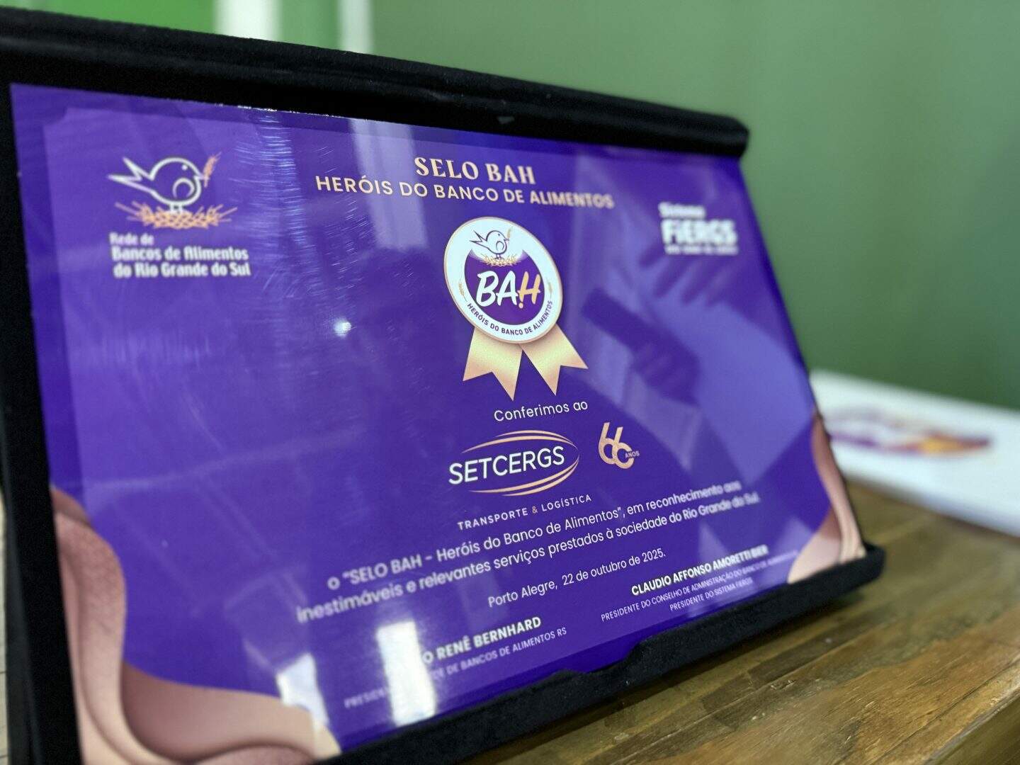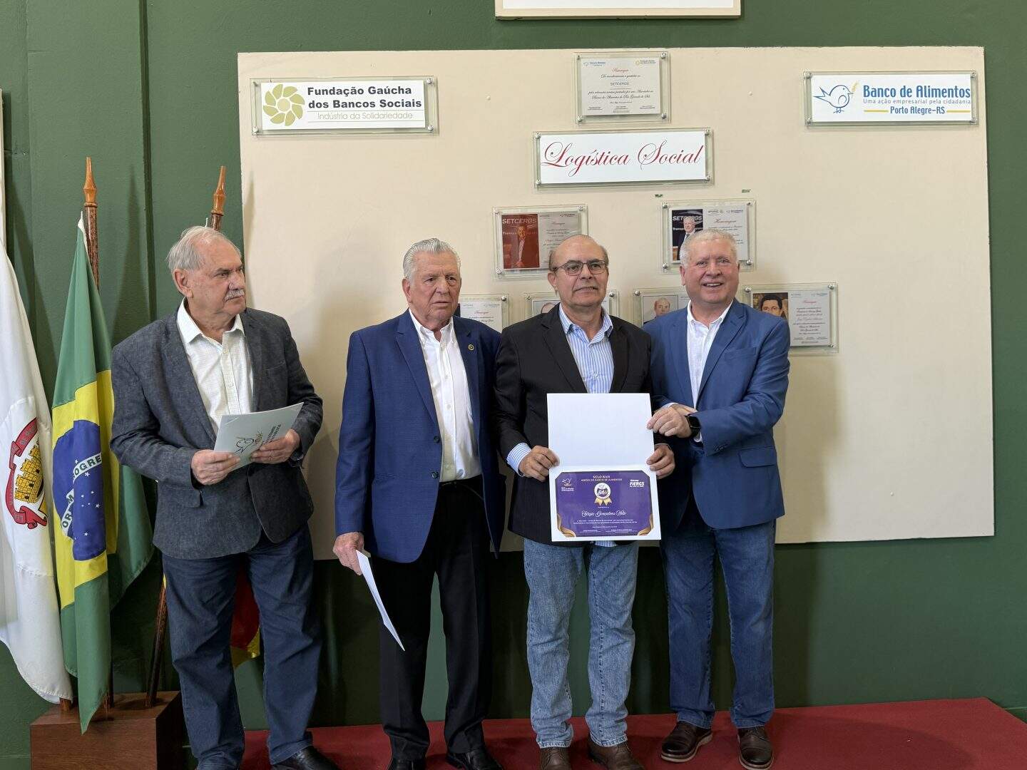 A cerimônia também marcou a entrega do Selo BAH – Heróis do Banco de Alimentos, concedido por Claudio Bier, presidente do Conselho de Administração do Banco de Alimentos e da FIERGS, e por Paulo Renê Bernhard. O selo reconhece lideranças que se destacam na promoção da cidadania e no enfrentamento da insegurança alimentar.