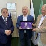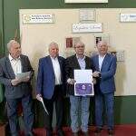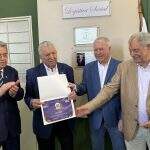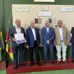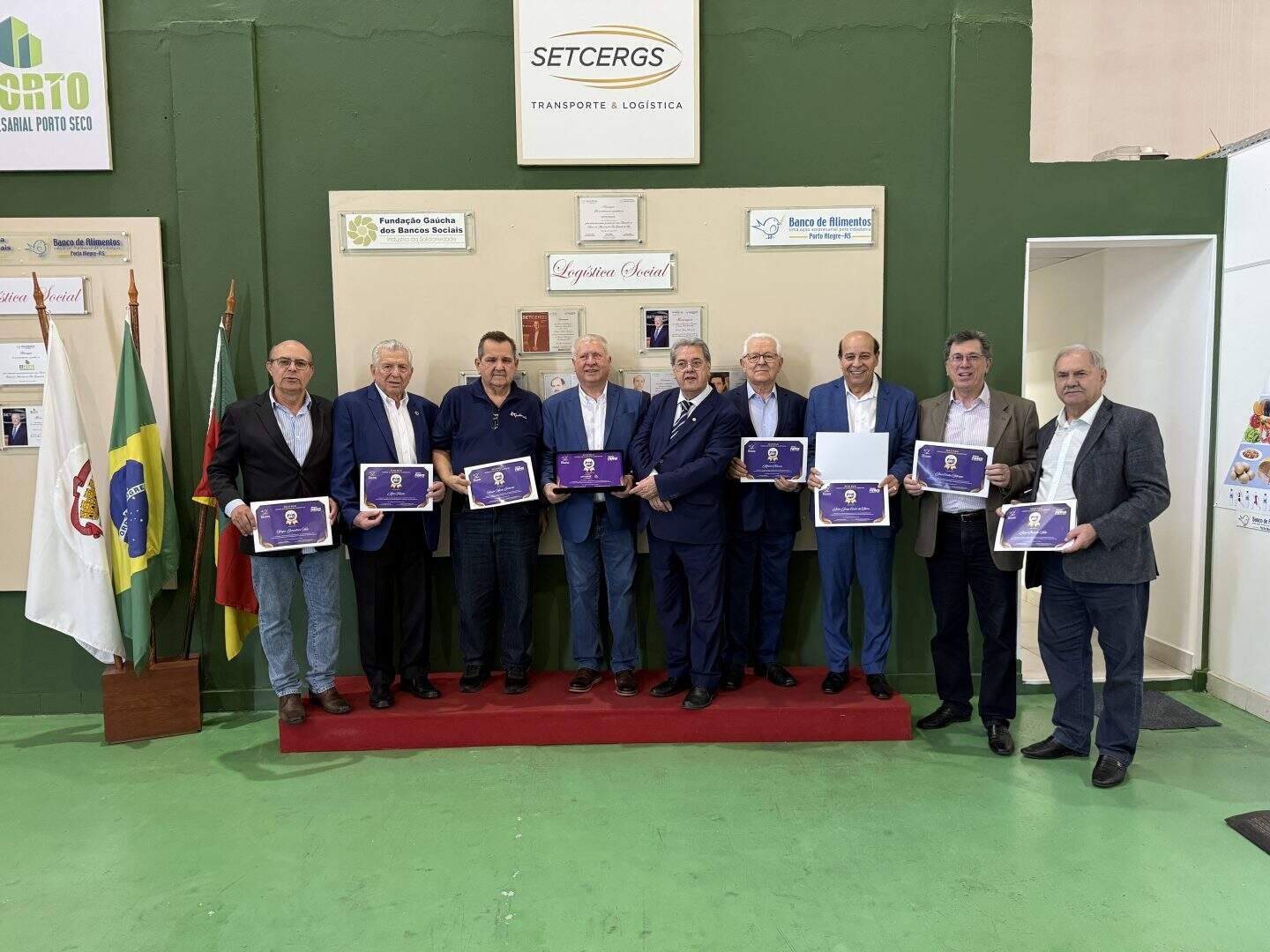 Presidente Delmar Albarello (ao centro), Banco de Alimentos, Paulo Renê Bernhar (direita ) e os ex-presidentes do Setcergs foram homenageados pelo Banco de Alimentos