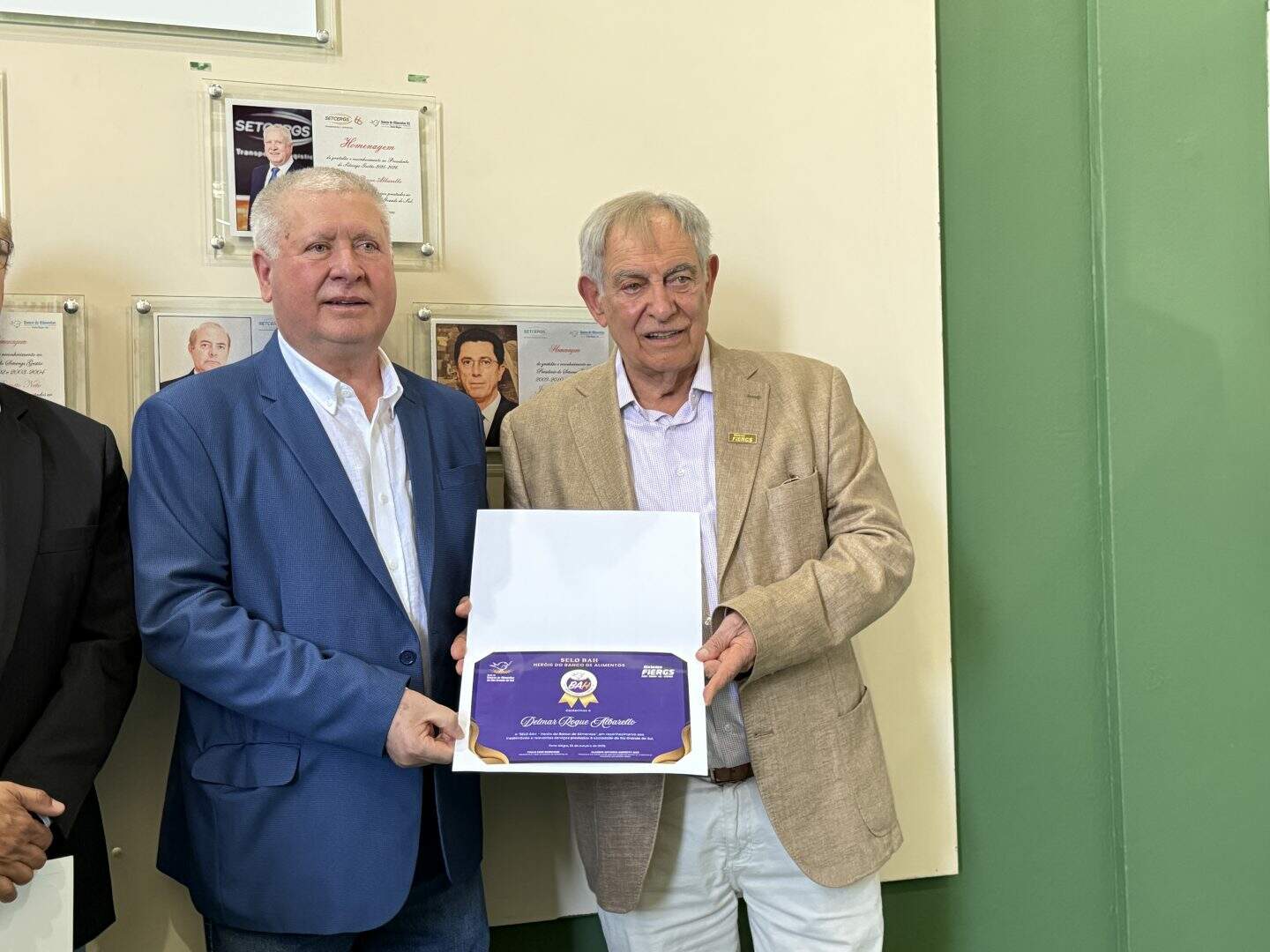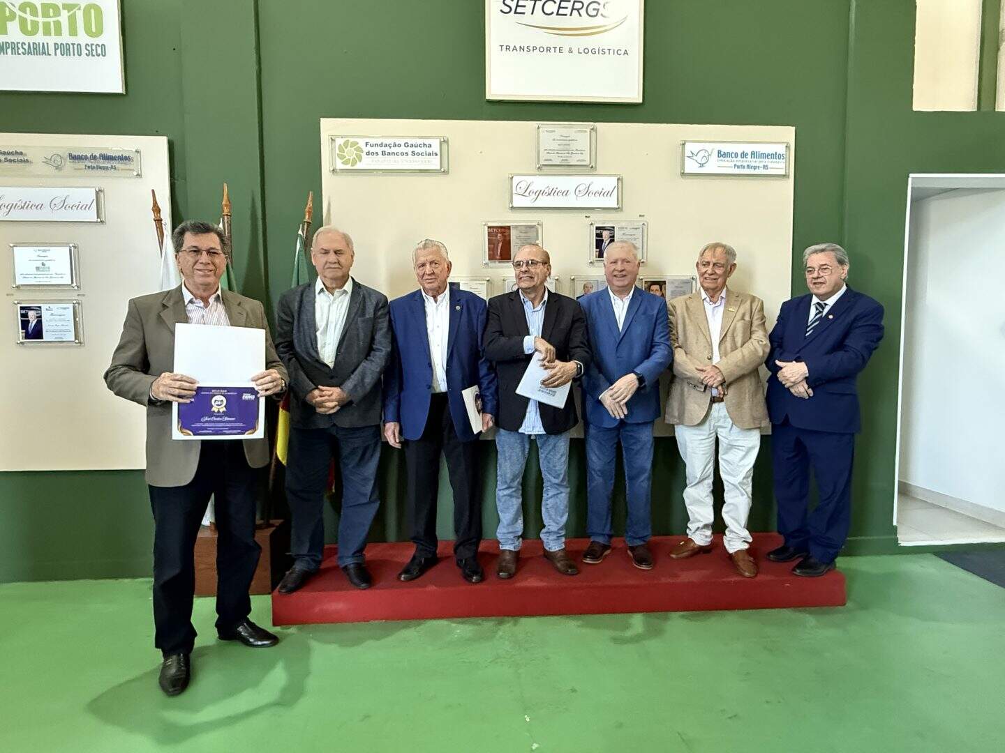 O atual presidente do SETCERGS, Delmar Albarello, foi homenageado ao lado de seus antecessores, em reconhecimento à contribuição histórica da entidade. Durante a cerimônia, foram descerradas placas nas galerias de honra do SETCERGS e do CEPORTO, registrando o nome de Albarello como símbolo de dedicação ao desenvolvimento do setor e à logística social.