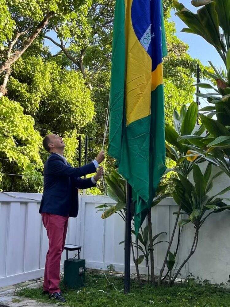 Após a decisão do Brasil de defender os interesses diplomáticos da Argentina na Venezuela, a bandeira brasileira foi erguida nesta quinta-feira (1º) na residência oficial do embaixador argentino em Caracas, de acordo com o Itamaraty.