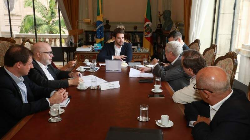 Secretários da Fazenda e do Planejamento, além de representantes do Banrisul, BRDE e Badesul, participaram da reunião com Leite.