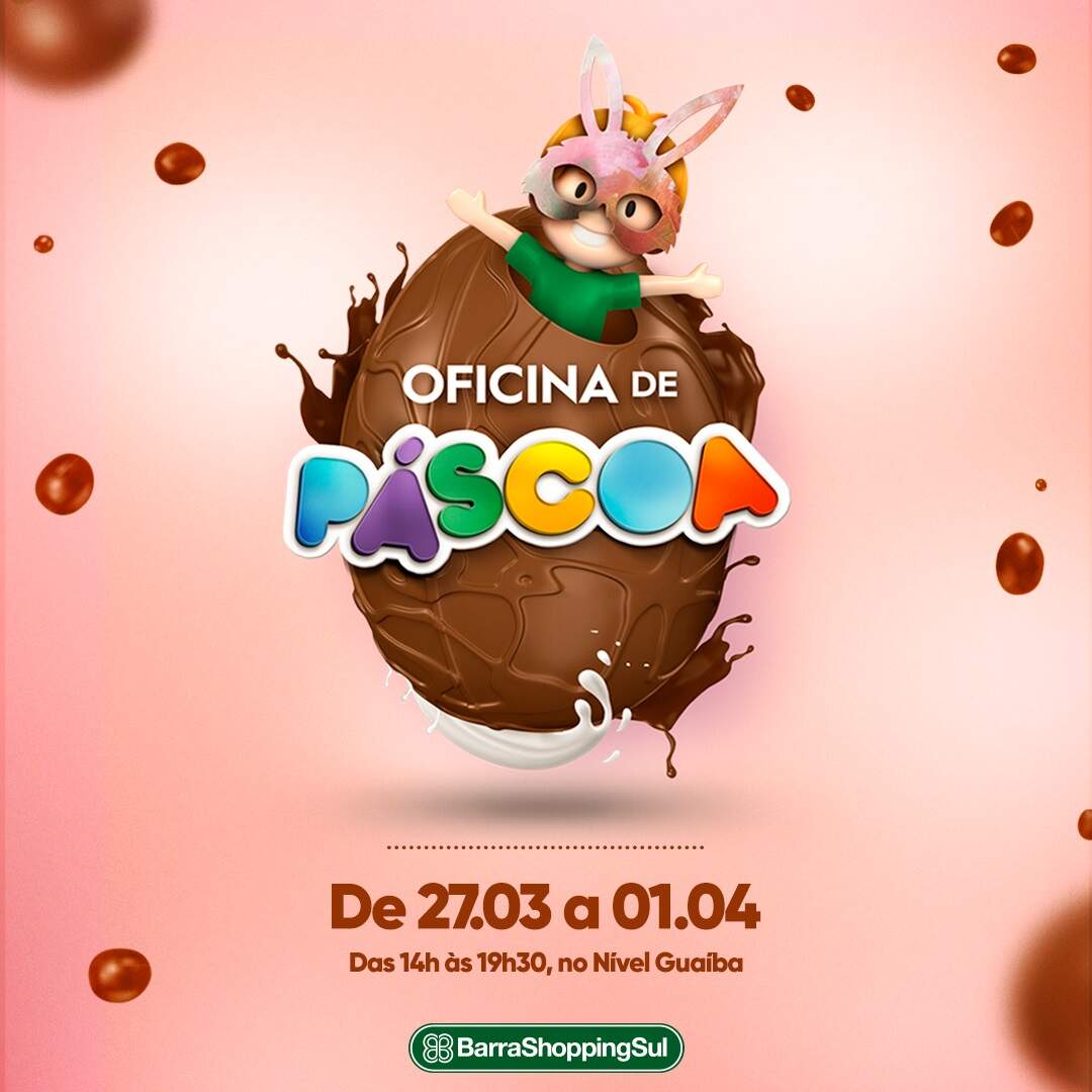 O BarraShoppingSul irá comemorar a Páscoa com atividades especiais para a criançada. A partir de 27 de março, o shopping irá oferecer oficinas gratuitas de confeitaria de ovos, pintura facial e confecção de orelhinhas de coelho. As atividades irão acontecer até 1º de abril, sempre a partir das 14h. As inscrições para a oficina de Confeitaria de ovos de Páscoa devem ser feitas no mesmo dia da atividade, a partir das 13h. Já para as oficinas de orelhinhas de coelho e pintura facial será por ordem de chegada.