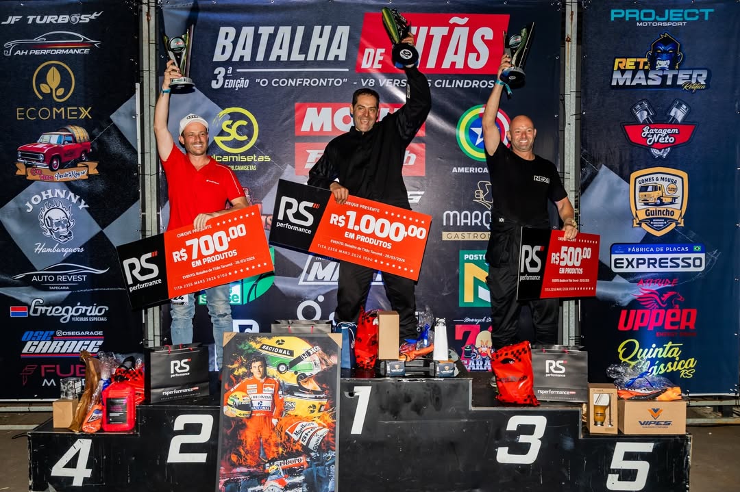 A 3ª edição da Batalha de Titãs aconteceu no dia 28 de março de 2026, no Autódromo Internacional de Tarumã, reunindo alguns dos carros mais preparados do Estado em um confronto direto entre V8 e 6 cilindros. O evento já se consolidou como um dos principais encontros de performance da região, atraindo pilotos, preparadores e apaixonados por velocidade para um dia de disputas intensas e muita adrenalina.