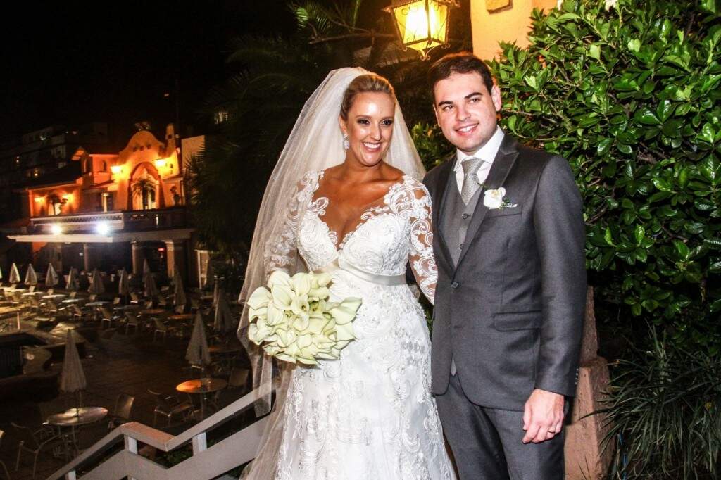 Os noivos Camila Solano e Gerson Garcia comemoram a união sob muitos aplausos. (Foto: Jackson Ciceri/O Sul)