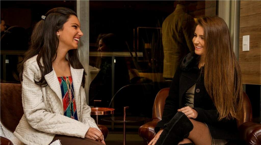 Ana Paula Ingrácio Porto e Fernanda Scherer Abbott em animada conversa durante o coquetel nos espaços de bom gosto de uma das unidades do edifício Marquis Moinhos, com a grife da UMA Incorporadora. (Foto: Pedro Antonio Heinrich/especial)