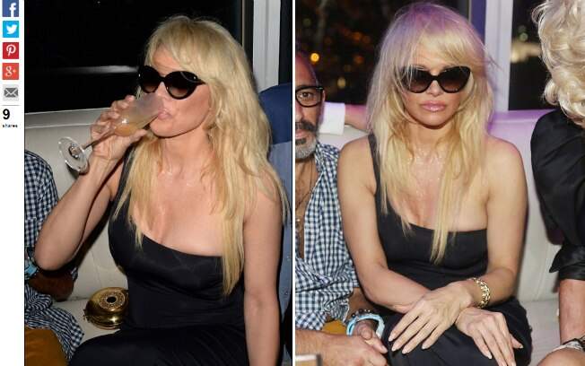 Pamela Anderson passa réveillon de preto, óculos escuros e despenteada