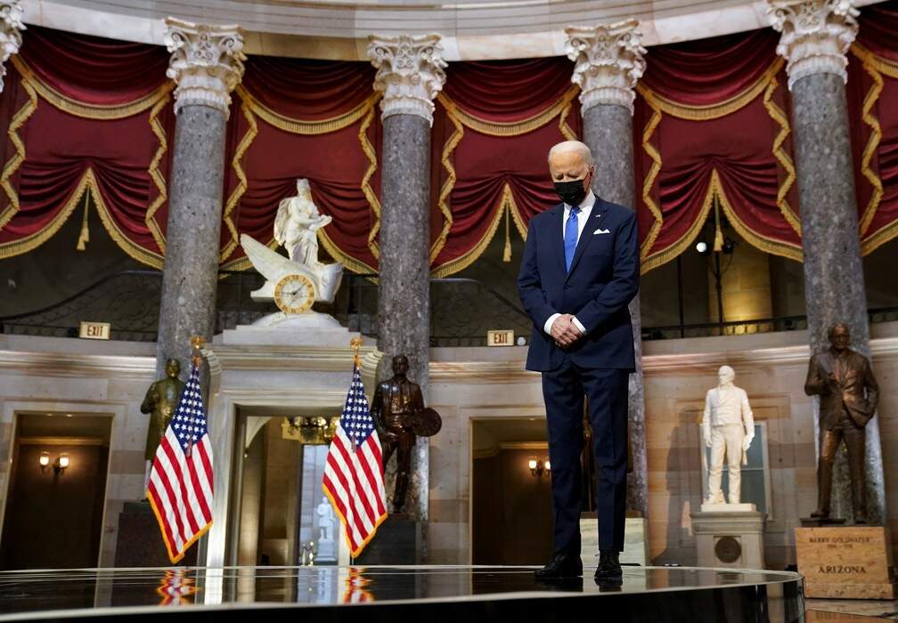 Biden alertou que o prejuízo causado por Trump antes da invasão — em um discurso enfurecido no qual afirmou falsamente que sua derrota era resultado de fraude generalizada — continua. Disse também que as mentiras que conduziram à raiva e à loucura do ataque não acabaram.