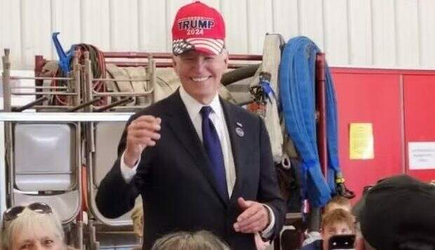 Foto: ReproduçãoO presidente dos Estados Unidos, Joe Biden, foi fotografado colocando um boné com apoio à candidatura de Donald Trump, nesta quarta-feira (11). A imagem foi registrada durante uma visita do presidente a um quartel dos bombeiros na Pensilvânia. A foto foi feita um dia depois do debate presidencial da ABC News, entre Donald Trump e Kamala Harris. A imagem acabou viralizando nas redes sociais, principalmente entre eleitores republicanos.