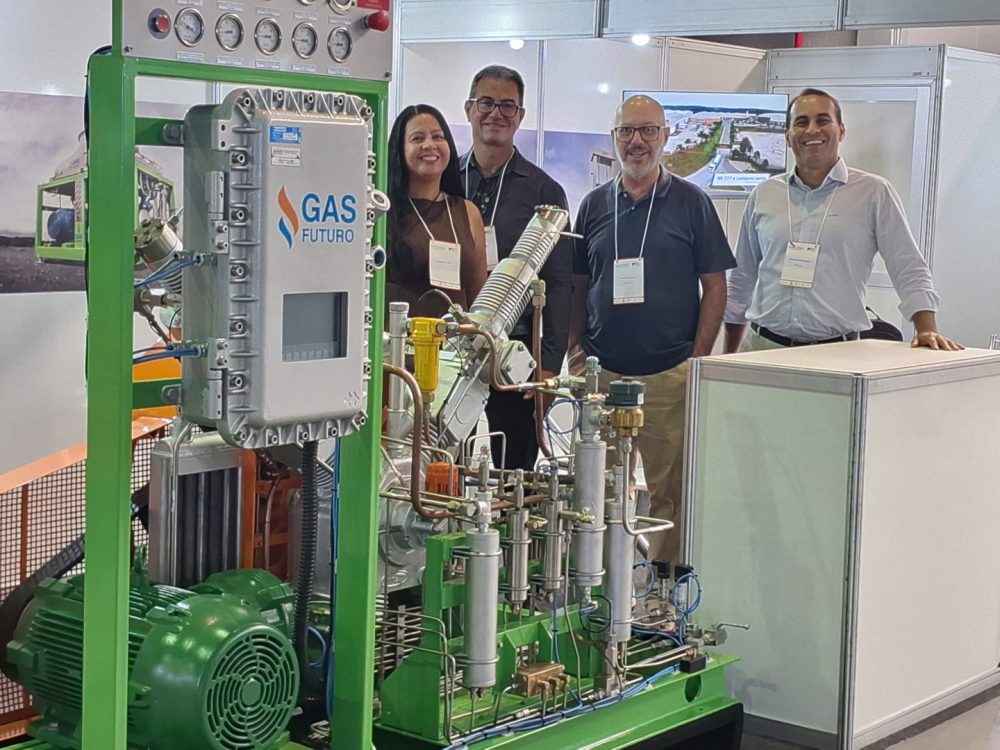 Enquanto os debates se desenrolavam nos auditórios, a área de exposição seguia como vitrine de soluções aplicadas. Um dos destaques foi a GAS FUTURO, sediada em Campo Largo, no Paraná. A empresa apresentou tecnologias para toda a cadeia do gás natural e do biometano, do campo ao consumo final.