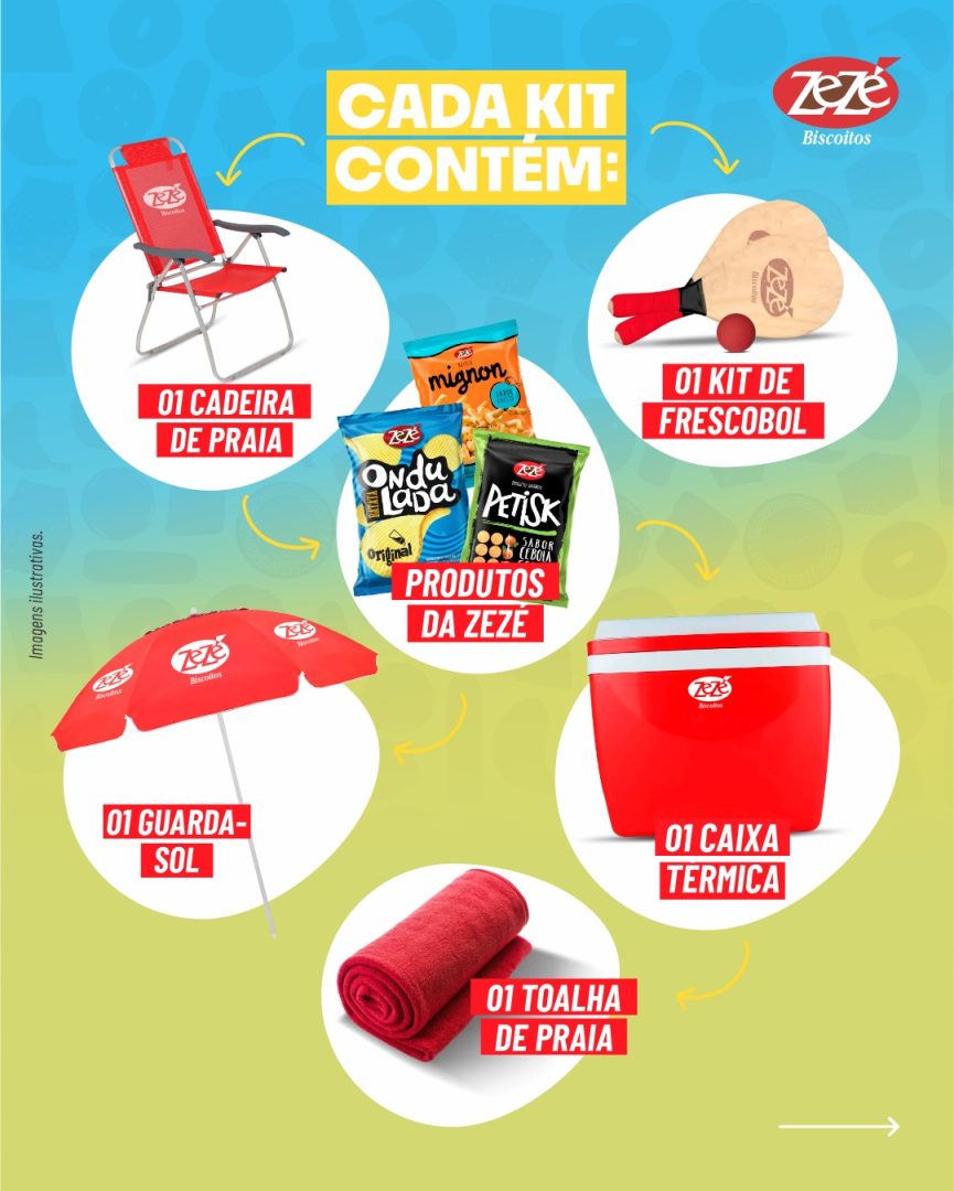 O Kit Verão Zezé inclui cadeira de praia, kit frescobol, guarda-sol, toalha personalizada, caixa térmica e uma seleção especial dos tradicionais produtos da marca. A iniciativa reforça a estratégia de engajamento digital, estimulando a participação ativa dos seguidores e ampliando a visibilidade da Zezé em ambientes virtuais.
