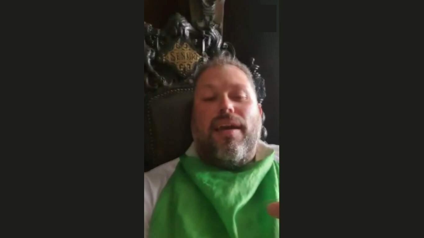 No vídeo, o homem apareceu dentro de um dos prédios dos três poderes invadidos pelos bolsonaristas terroristas durante os atos golpistas.