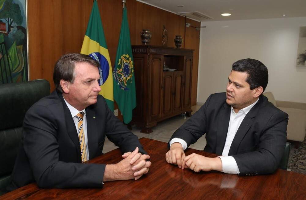 Presidente Jair Bolsonaro (E) e o senador Davi Alcolumbre em reunião