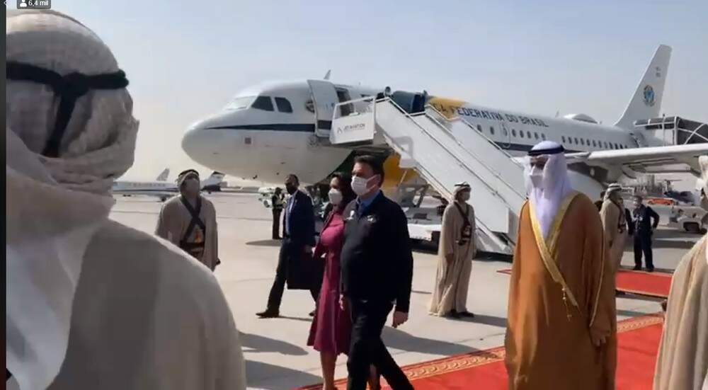 O presidente publicou em rede social um vídeo no qual aparece descendo do avião ao lado de Michelle Bolsonaro – ambos de máscara. Na tarde deste sábado (manhã no Brasil em razão da diferença de fuso horário), Bolsonaro tem previsão de ir à Expo 2020, a exposição universal, que na edição deste ano ocorre em Dubai (leia mais abaixo).
