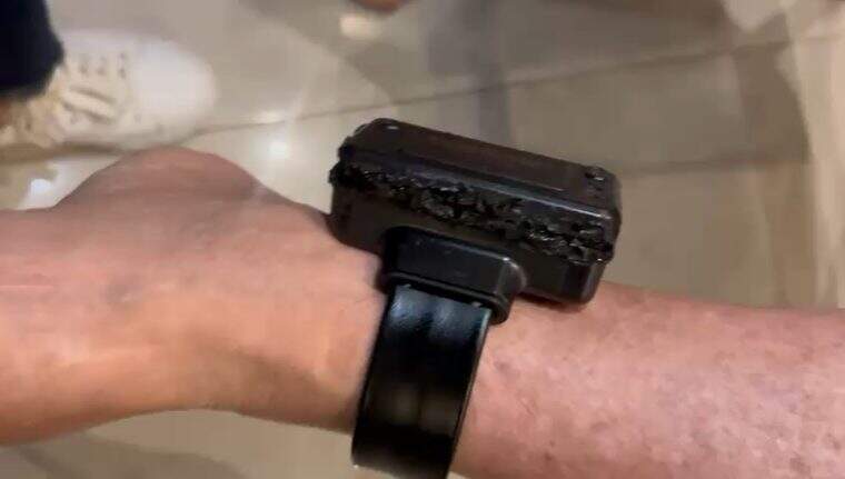 “Eu meti o ferro quente aí. Curiosidade”, diz Bolsonaro no vídeo. A agente então pergunta: “Que ferro foi?”. Ele responde: “Ferro de soldar”. No relatório enviado ao ministro Alexandre de Moraes, o órgão descreve que Jair Bolsonaro tentou abrir sua tornozeleira eletrônica usando um ferro de solda.