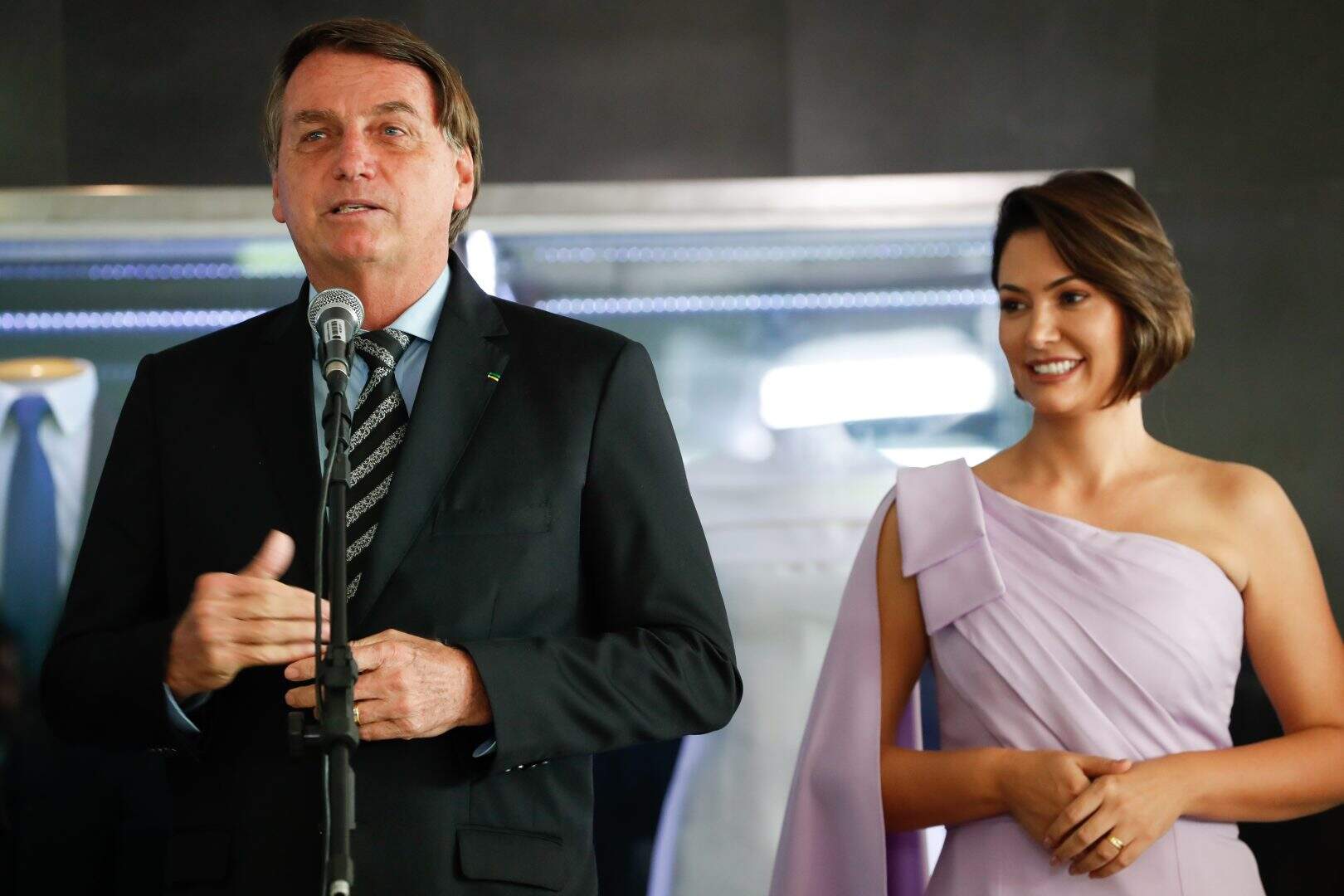 O casal apareceu com alguns minutos de atraso, acompanhado da filha, Laura, de 10 anos, para descerrar uma faixa verde-amarela. O clima era de celebração, com dezenas de convidados, entre eles ministros de Estado, aglomerados diante das peças. O presidente e a primeira-dama então passaram a falar sobre o “dia memorável” e a história dos trajes. Bolsonaro fez questão de fazer propaganda para o alfaiate que confeccionou sua roupa gratuitamente, divulgando até o endereço do seu novo ateliê em Brasília.