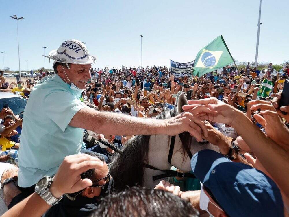 Mais cedo, após desembarcar no Aeroporto Internacional Serra da Capivara, em São Raimundo Nonato (PI), a 523 quilômetros de Teresina, Bolsonaro montou em um cavalo em meio a apoiadores na área externa do terminal. Ele tirou o chapéu e a máscara que usava, agradeceu a presença das pessoas e discursou para a multidão.