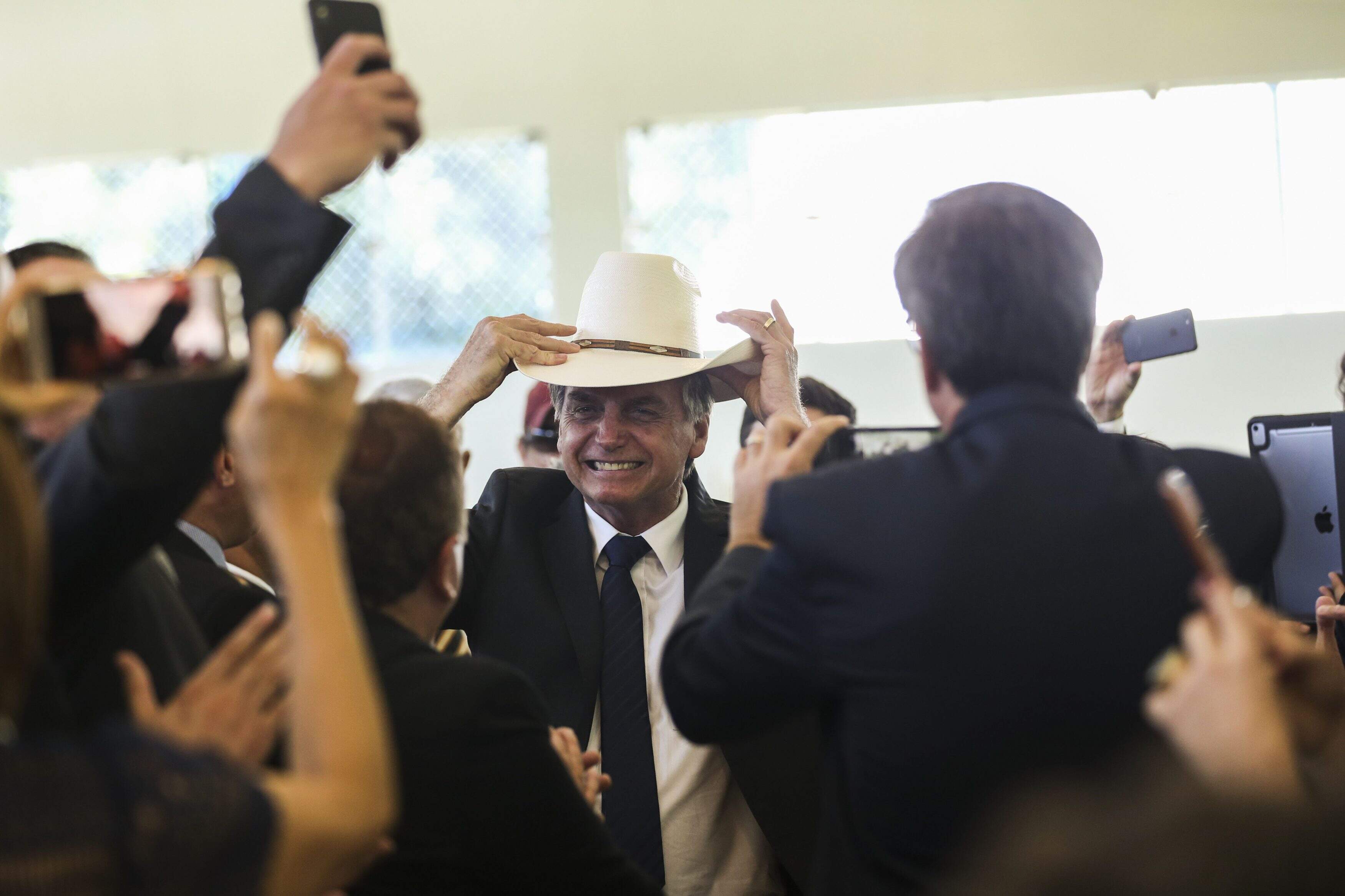 Ao mencionar a facada pela qual foi atingido em setembro, durante ato de campanha em Juiz de Fora (MG), disse: “Eles deram azar e chegamos até aqui”. O presidente eleito fez um breve discurso usando um chapéu que ganhou do locutor do rodeio de Barretos (SP), Cuiabano Lima. Em sua fala, exaltou a importância da família e de Deus, a quem agradeceu por diversas vezes.