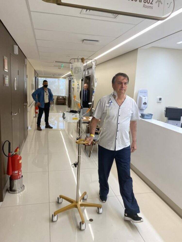 Uma foto do presidente circulando pelo hospital foi publicada em suas contas nas redes sociais na manhã desta sexta. Na madrugada, a primeira-dama, Michelle Bolsonaro, publicou uma foto de Bolsonaro com outra paciente do hospital. Bolsonaro aparece de pé – usando sonda – ao lado de uma mulher que está na maca.
